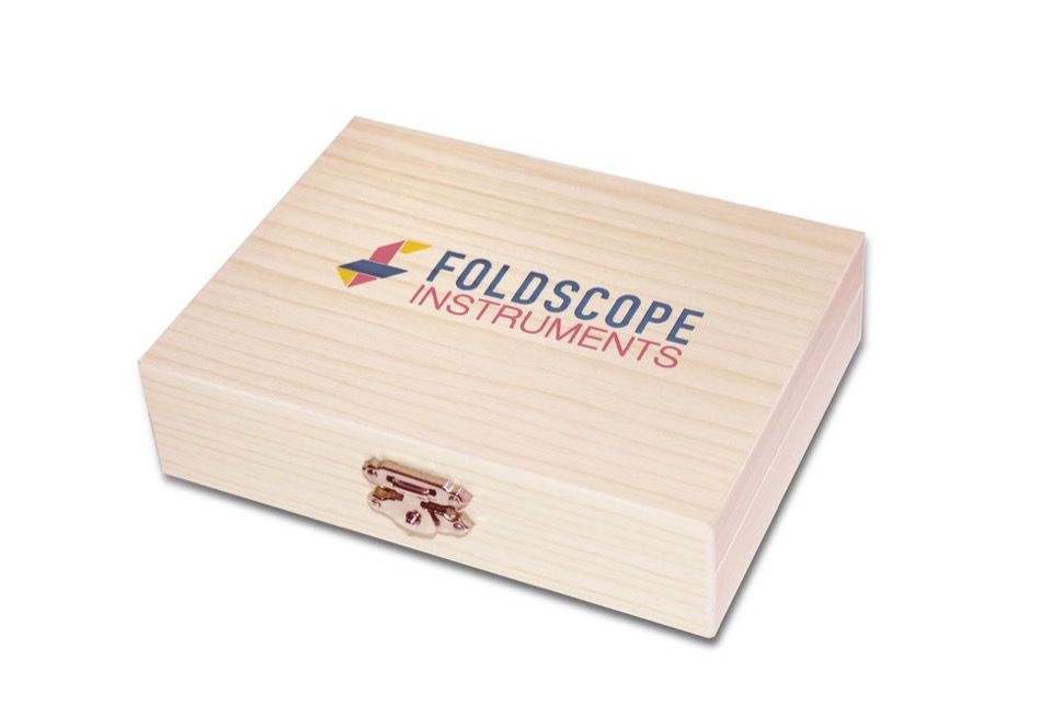 Kit para confecção e manipulação de lâminas de microscopia utilizado em microscópio de papel Foldscope para fins educacionais, acompanhado com 1 caixa em madeira contendo: